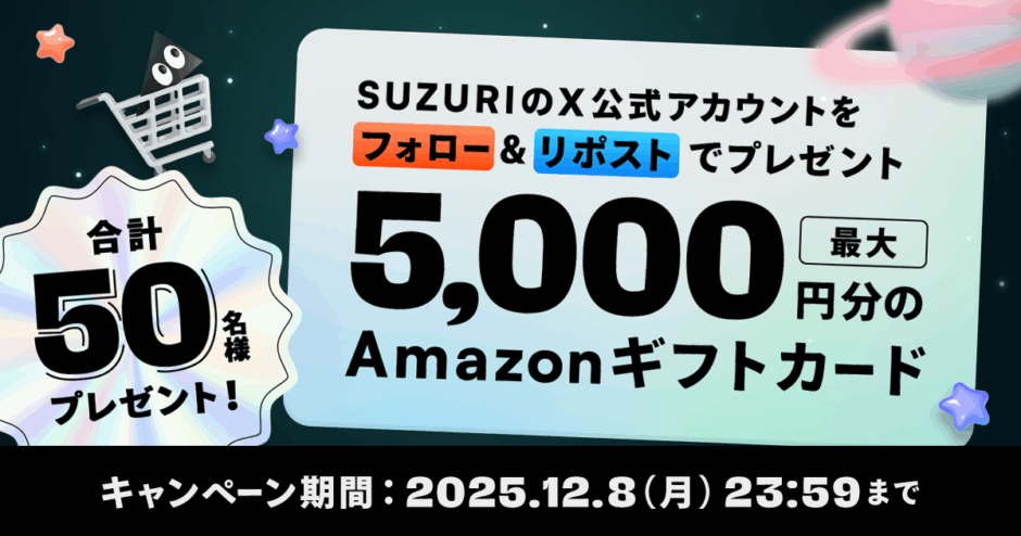 SUZURIのブラックフライデー の開催期間中、フォロー&リポストキャンペーンを実施します。