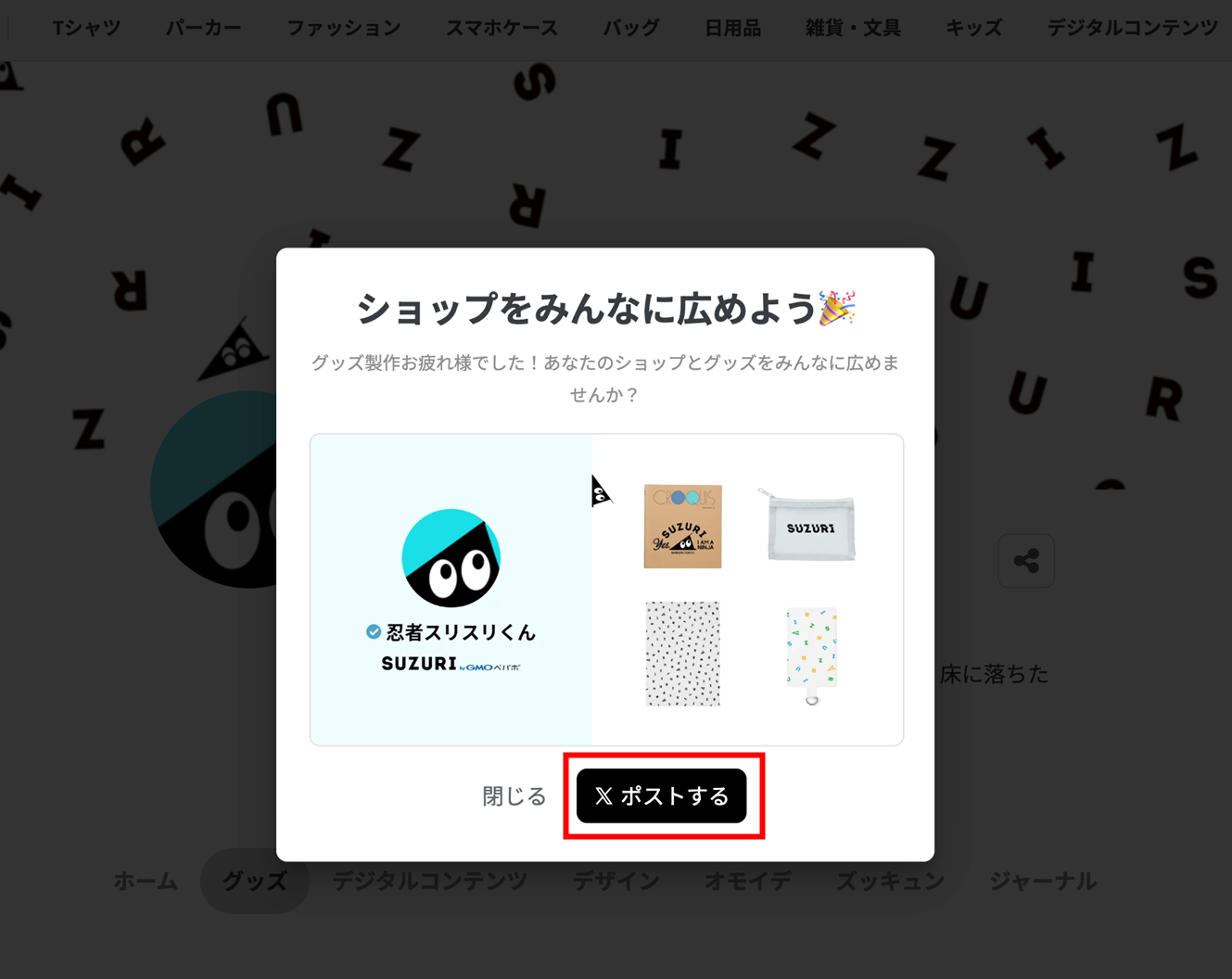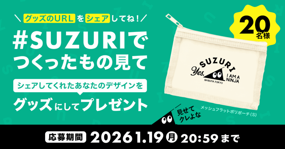 - 対象者の方へのご連絡のため、キャンペーン終了後も「SUZURI公式忍者スリスリくん(@suzurijp)」Xアカウントのフォローをお願いします。