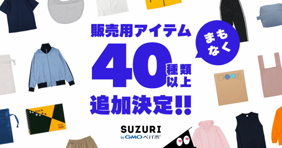 これにより、SUZURIで販売できるアイテムの総数は100種以上に🎉